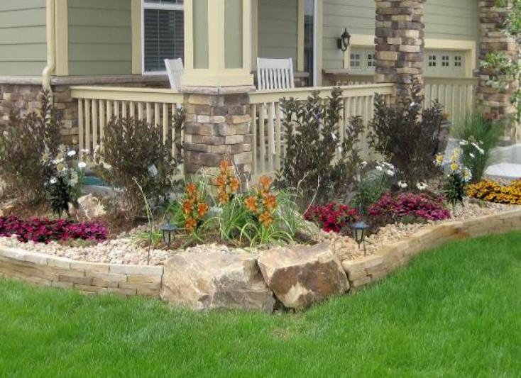background and layered with some native perennials. A decorative wall is a effective way to add some curb appeal to