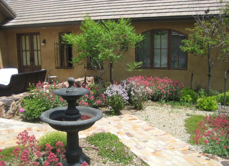 Courtyard with perennials almost in full bloom. The location of the property made for some challenges with